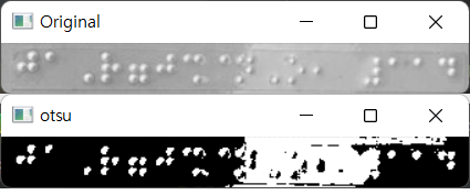 점자 이미지를 이진화하여 점자의 위치만 뽑아낼 수 있도록 해보겠습니다.