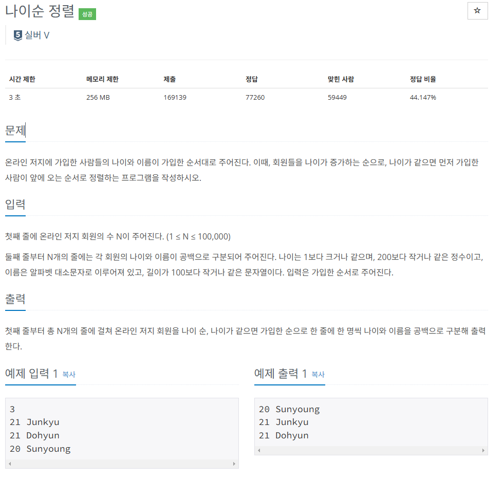 나이순 정렬 - 10814번 문