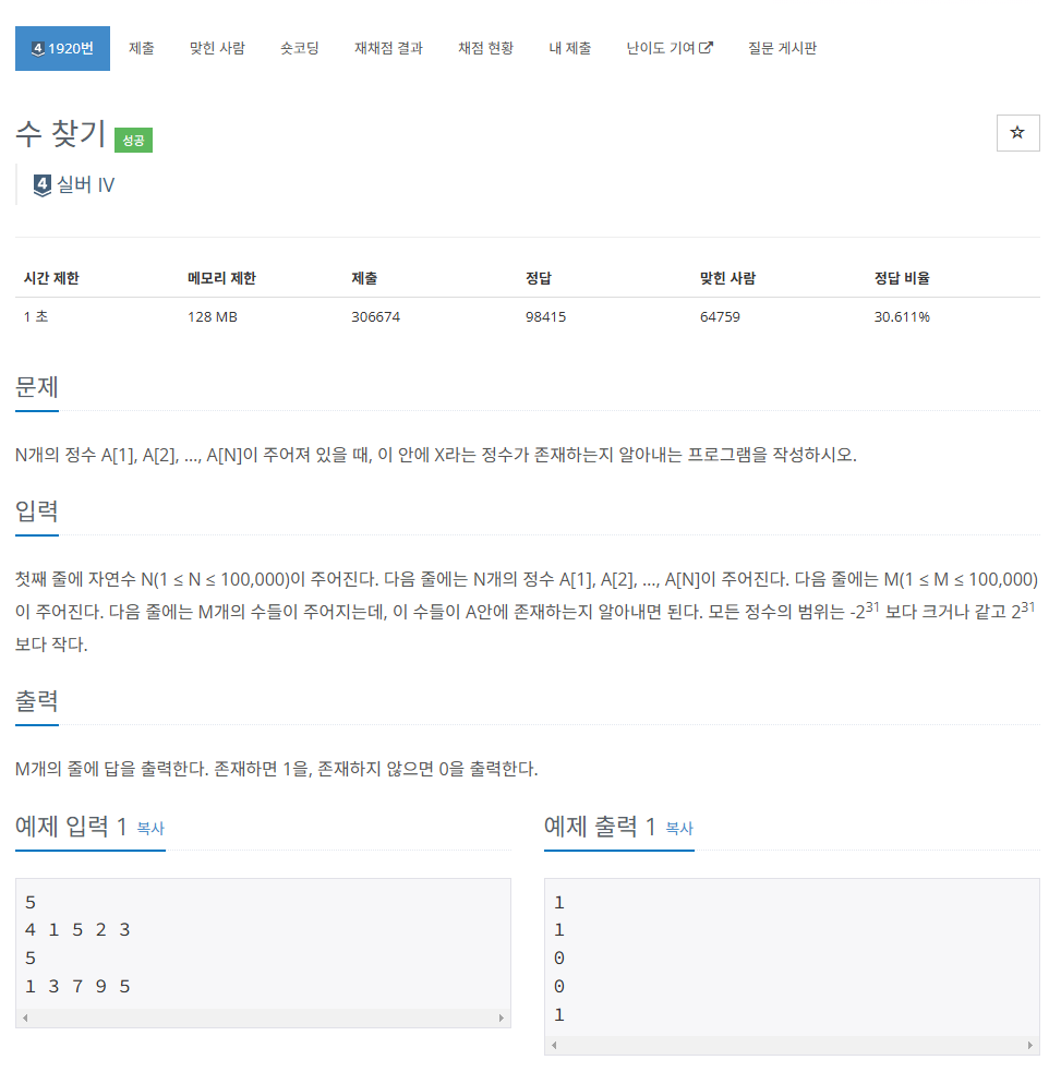 수 찾기 - 1920번 문제