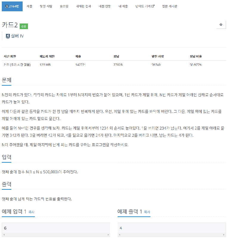 카드2 - 2164번 문제